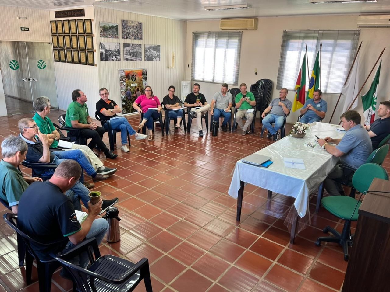O objetivo do encontro foi alinhar as informações entre os Sindicatos, Fetag e Cooperativas sobre assuntos que impactam a atividade agrícola, tais como: comercialização da safra de trigo, mercado de leite, Royalt’s soja intacta e crédito bancário para os produtores rurais.